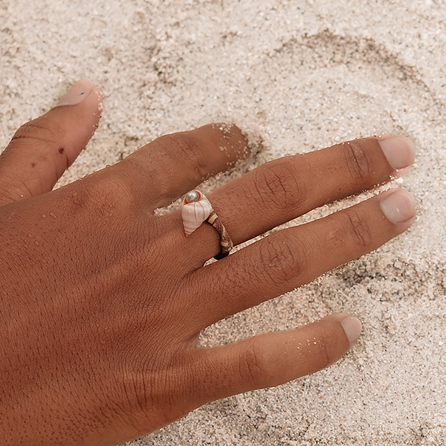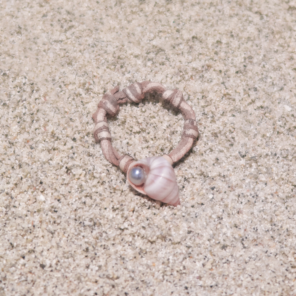 At its center, a delicate shell cradles a Tahitian Keshi pearl nestled within its opening ; like a hidden treasure revealed by the ocean. Each shell and Keshi is unique, making every ring a singular, deeply personal piece.